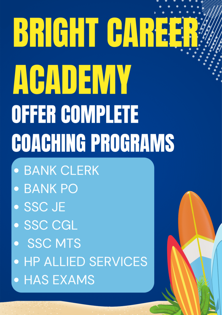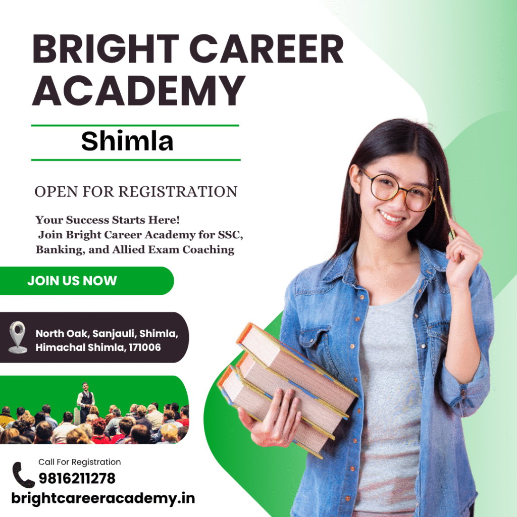 The best coaching institute in Himachal-Bright Career Academy is located in Shimla, known for its high-quality teaching, modern infrastructure, and student-centric approach, the academy has become the first choice for aspirants preparing for banking, SSC, Allied, HAS, and other government exams.