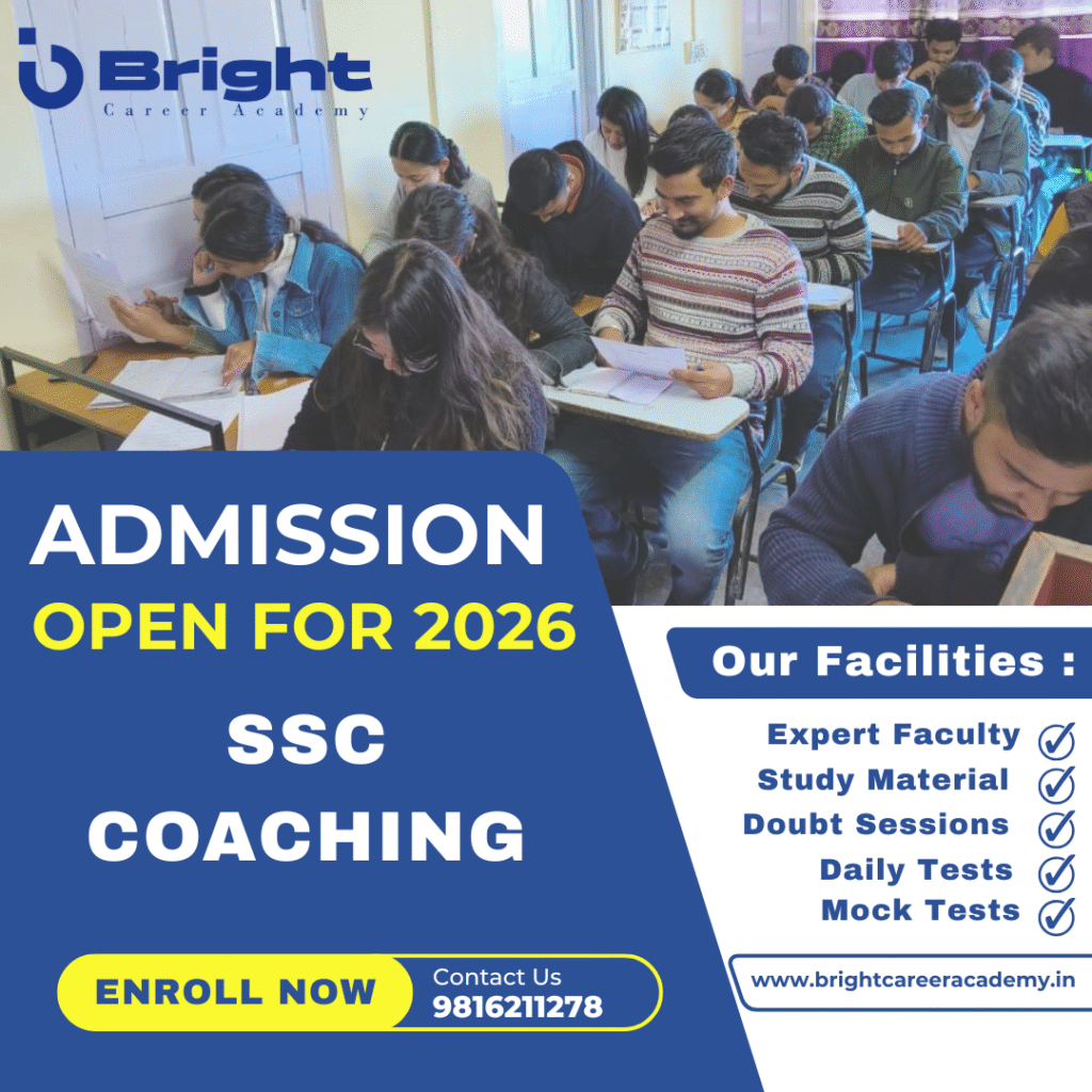 Choosing the right SSC coaching in Shimla is the most important step toward securing a government job. With increasing competition in SSC CGL, SSC CHSL, SSC MTS, and SSC GD exams, aspirants need expert guidance, structured preparation, and continuous practice. Bright Career Academy Shimla stands out as the best SSC coaching in Shimla because of its experienced faculty, updated study material, regular mock tests, and result-oriented approach.